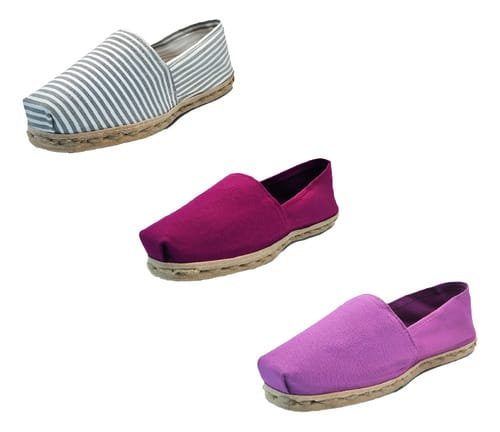 TriPack de alpargata iberia con modelos ray gris/blan, burdeo y jacarandá con un rango de talla de 34 a 39.
