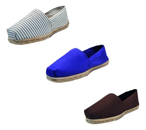 TriPack de alpargata iberia con modelos ray gris/blan, morado y cafe con un rango de talla de 34 a 39.