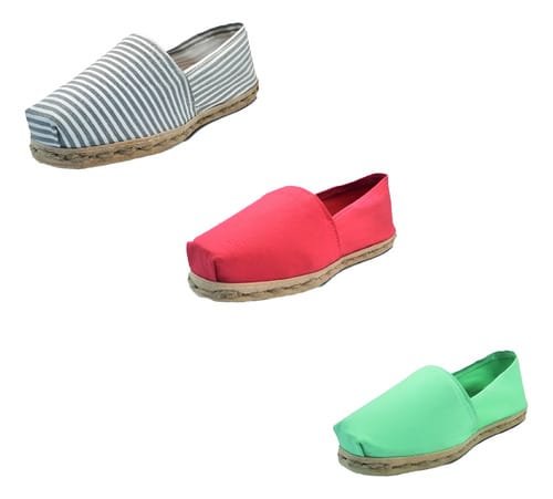 TriPack de alpargata iberia con modelos ray gris/blan, terracota, turquesa con un rango de talla de 34 a 39.