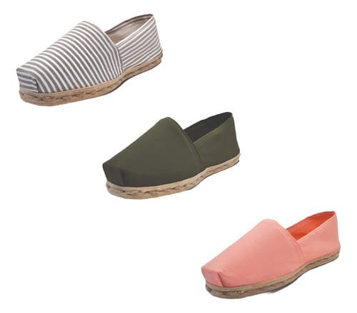 TriPack de alpargata iberia con modelos ray gris/blan, verde militar y coral con un rango de talla de 34 a 39.