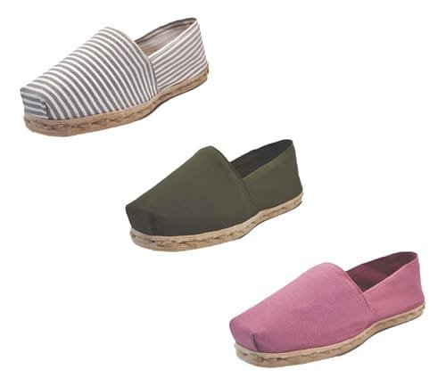 TriPack de alpargata iberia con modelos ray gris/blan, verde militar y jacarandá con un rango de talla de 34 a 39.