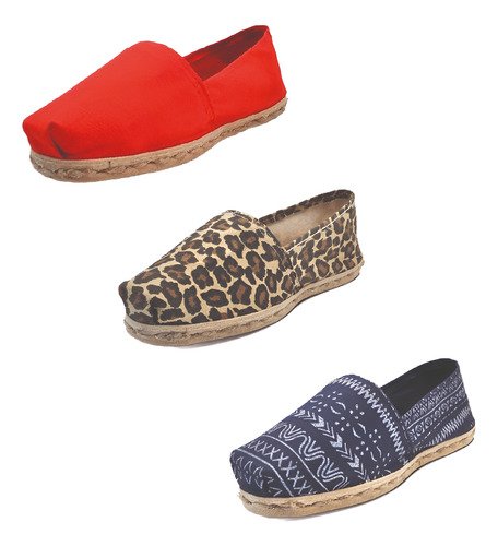 Tripack Alpargata Rojo, Animal Print Y Azul Étnico